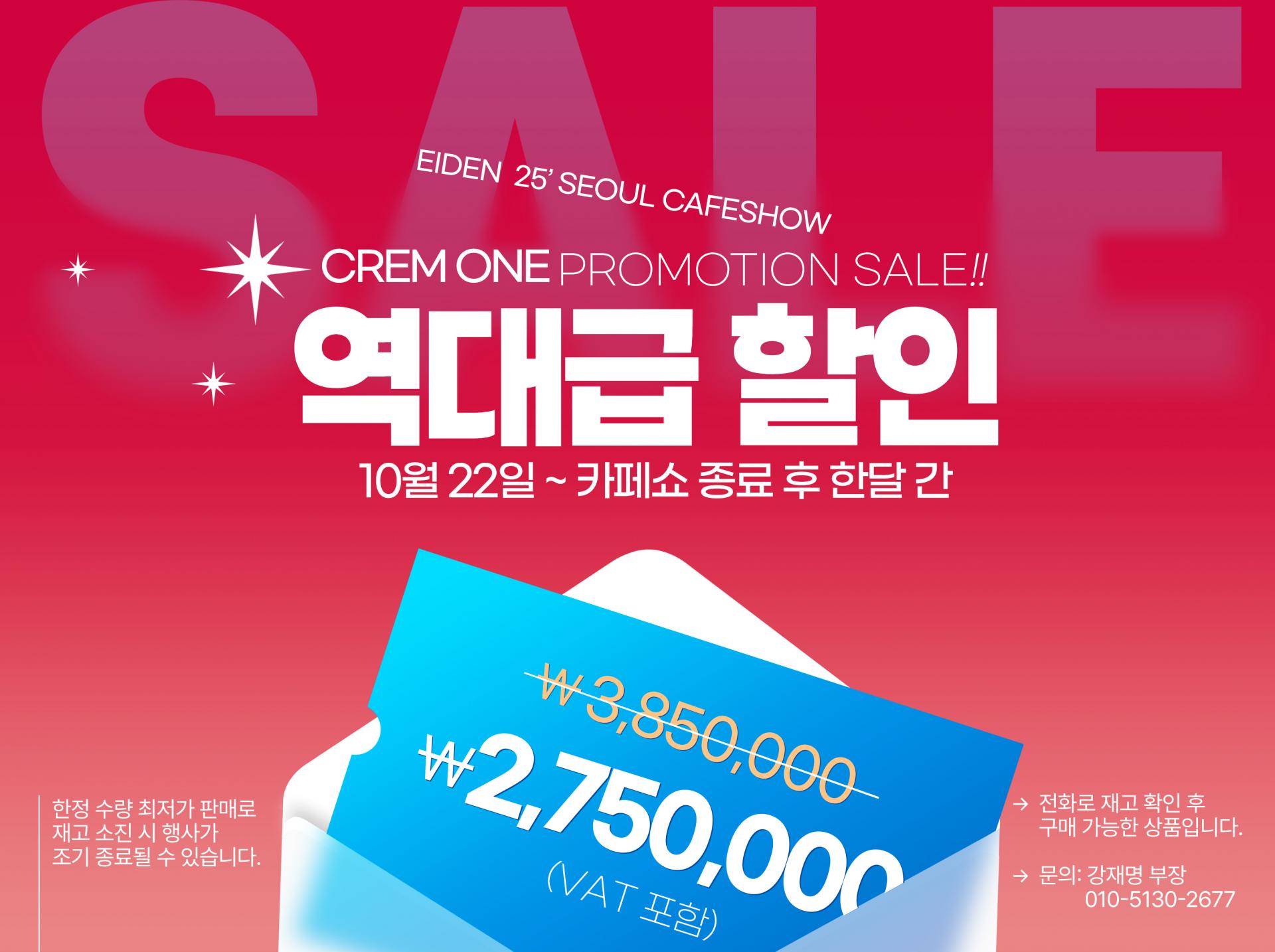 🔹CREM ONE 25’ 카페쇼 한정 특가 프로모션 |